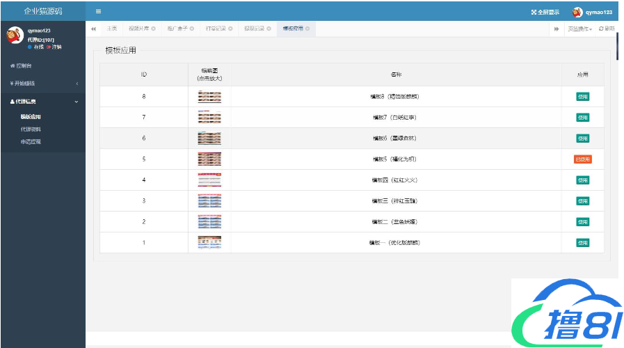 成功搭建并可以正常进入后台和代理后台,但后台需要进行较多设置,例如落地域名、代理域名、盒子域名和入口域名等,对企业猫来说有点繁琐,因此未进行详细测试。