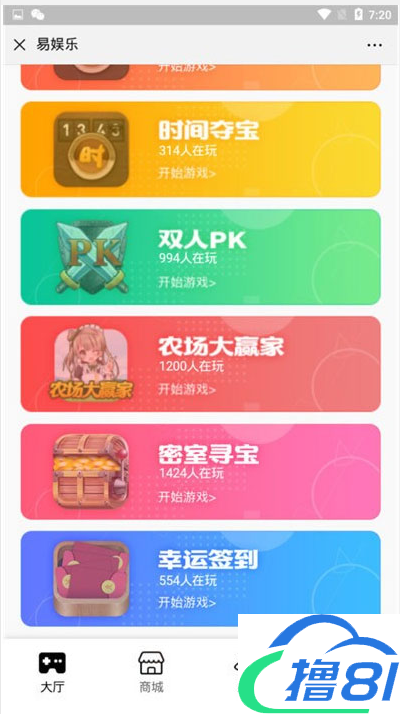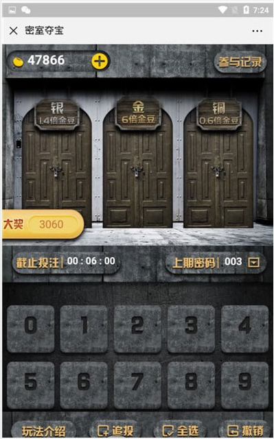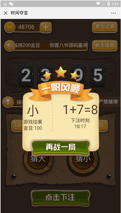 游戏含有:尾号夺宝 ,时间夺宝, 密室寻宝, 双人PK,(类似CP),农场大赢家, 幸运签到
