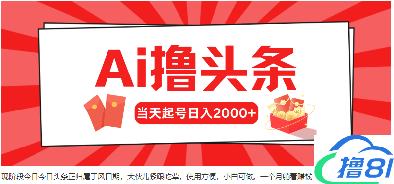 Ai撸今日头条,当日养号,第二天见盈利,日入2000