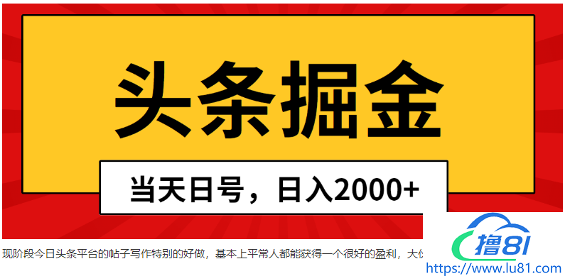 今日头条掘金队,当日养号,第二天见盈利,日入2000