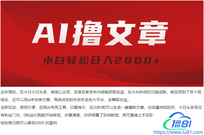 AI撸文章内容,全新派发游戏玩法,当日见盈利,新手轻轻松松日入2000