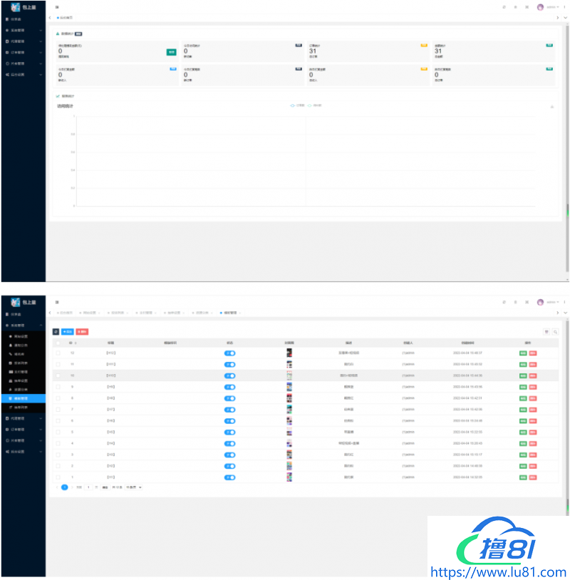 公告管理,您可以自定义公告内容通知代理可发布图片、视频、富文本等等如:教代理使用代理后台,告诉代理注意事项等等,(代理每次登录后台自动弹窗公告一次)后台可自定义模板是否开启使用,模板封面图标题等等,前端更有全随机标题防止被恶意针对全随机防洪,全新短视频裂变推广等功能提示催促用户支付提升支付率等等。