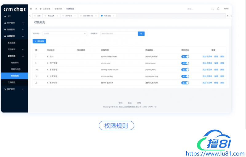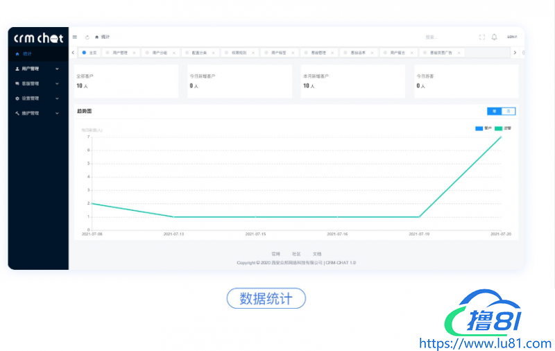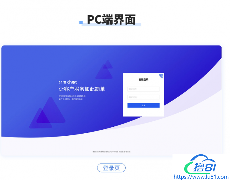 本系统(CRMChat)是采用Swoole4+Tp6+Redis+Vue+Mysql开发的独立高性能客服系统,客服系统用户端支持Pc端、移动端、小程序、文章中接入客服,利用超链接、网页内嵌、二维码、定制对接等方式让网上所有通道都可以快速通过本系统联系到商家,商家端支持Pc端、移动端(App)随时随地接收到用户的各种咨询,商家可以添加话术库、也可以对用户进行分组、加标签、加备注进行管理,是一款互联网链接商家的一个桥梁,也是商家客户管理的工具,本开源项目遵循最开放的木兰协议,可以随意使用。