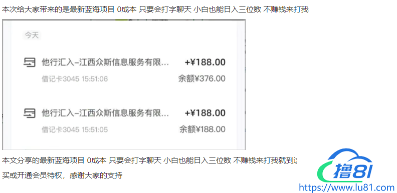 最新蓝海项目 0成本 只要会打字聊天 小白也能日入三位数 不赚钱来打我