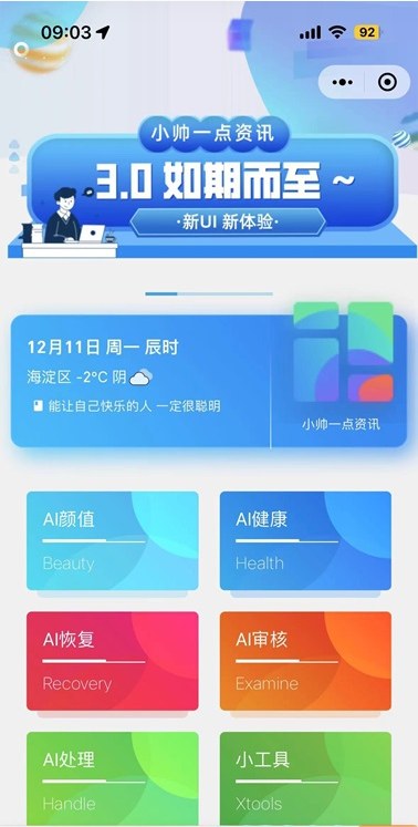 小帅一点资讯微信小程序图像识别源码,微信小程序百度AI接口源码,微信小程序图片上传显示缩放缩略图,人工智能,图像识别,人脸颜值分析,植物、动物、车型、LOGO、食材、手写文字识别、AI算命、人脸斑痘痣、眼袋黑眼圈检测、智能闲聊等。