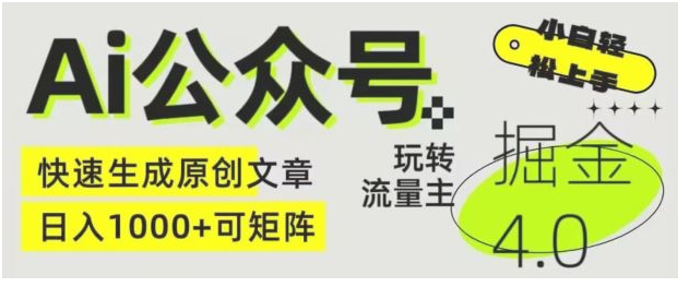 Ai公众号掘金4.0,玩转公众号流量主,快速生成原创文章,可矩阵【揭秘】