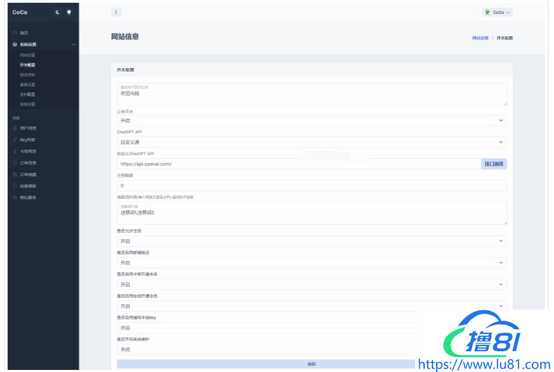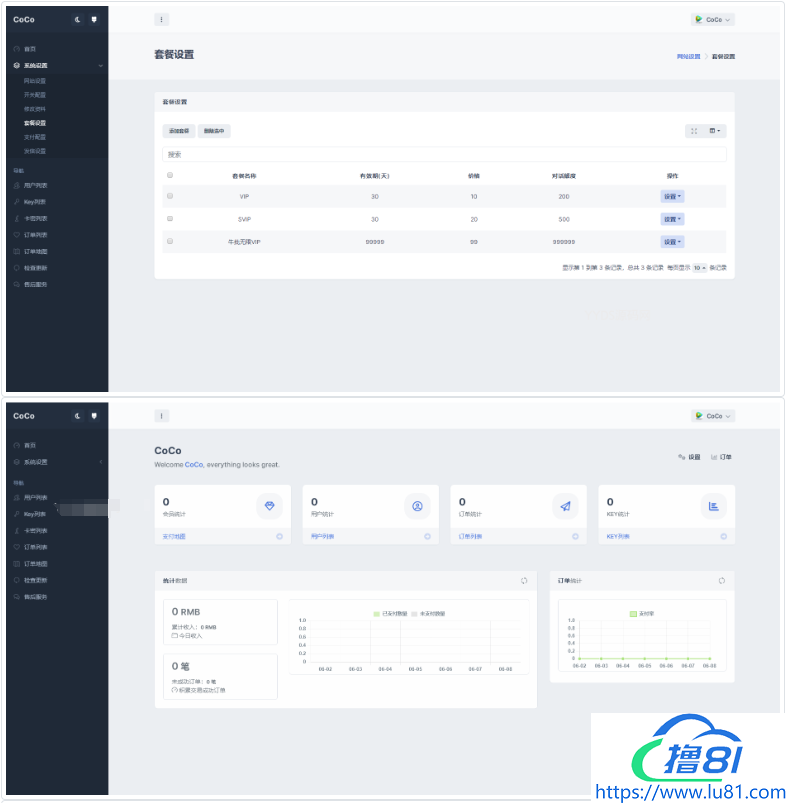 支持设置付费套餐,支持官方支付以及易支付,支持API接口更改,支持卡密