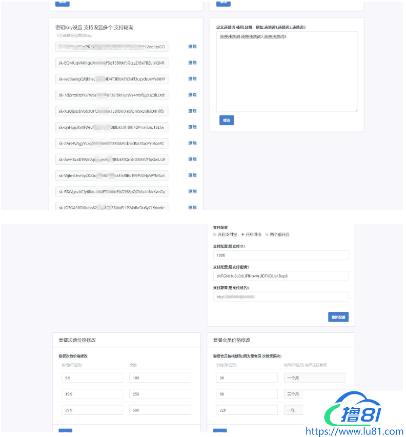 登录之后可购买付费套餐,也可以关闭整站收费功能,具体到后台设置里面自己去看吧