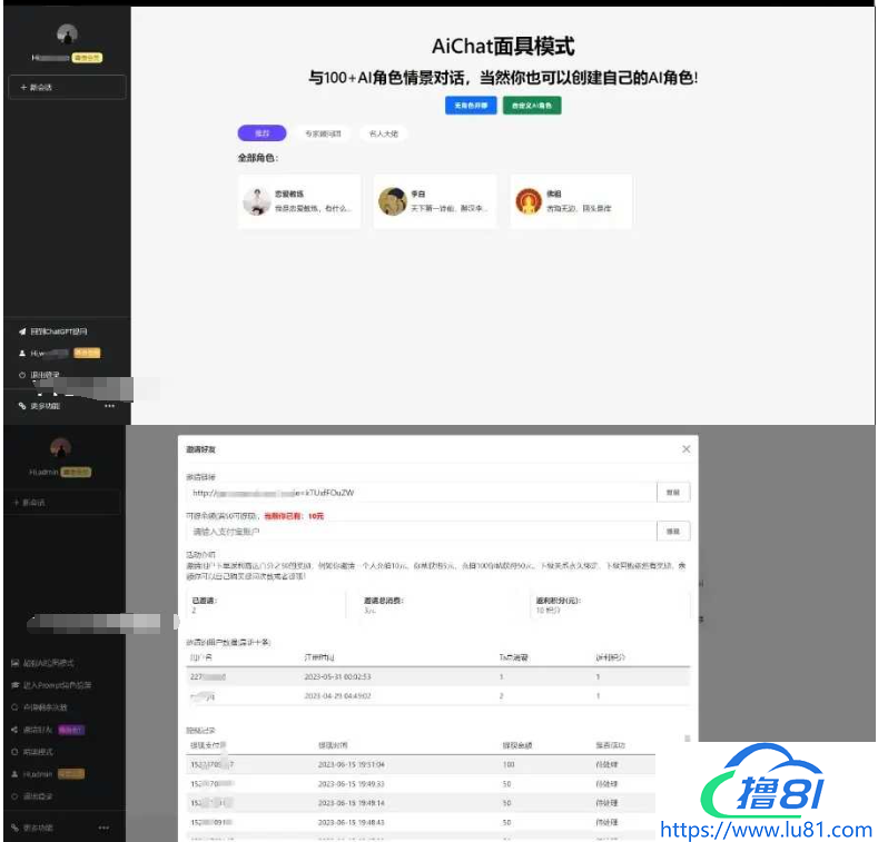 精彩功能:【AI对话 基于openai的api接口 ChatGPT 3.5】【用户推广佣金提成】【会员功能】【卡密功能】【支持 次数/时间】【key轮询、失效自动隐藏】【自定义卡密次数】【自定义出售价格】【用户免费体验次数设置】【支持IP注册限制】【邮箱验证码注册】【找回密码功能】【跳板域名 也就是防洪用的,让推广分享的链接跟主站域名不同】【设置违禁词,内容安全】