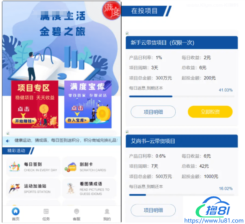满度投资理财:余额宝、合约收益、P2P理财、积分商城和小游戏应有尽有
