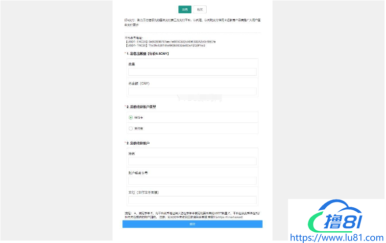 usdt出售购买价格根据后台配置数量不一样价格不一样。 前端输入内容提交后,后台会邮箱通知网站管理员处理订单。
