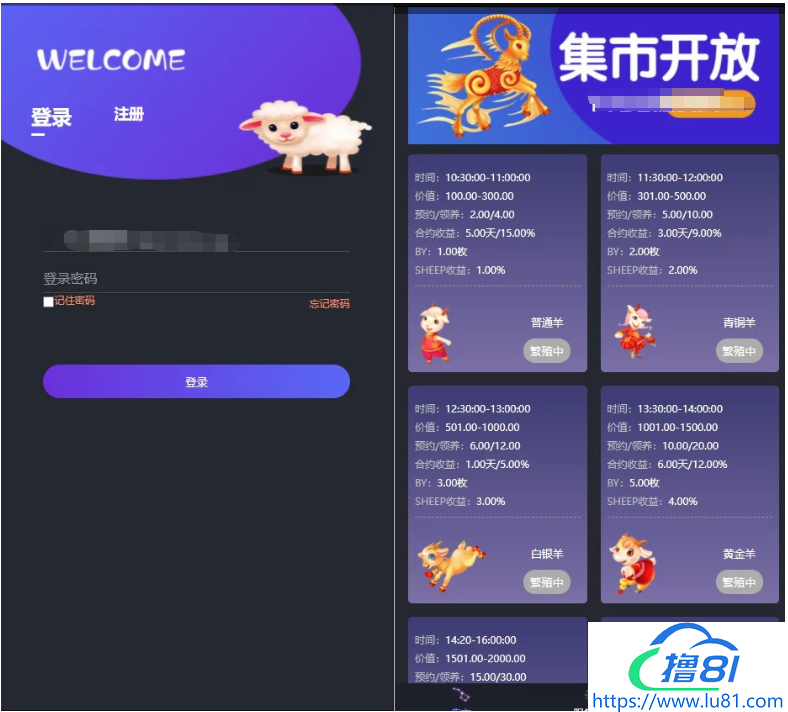 区块羊投资源码/支持预约 转让 领养 抽奖等等功能