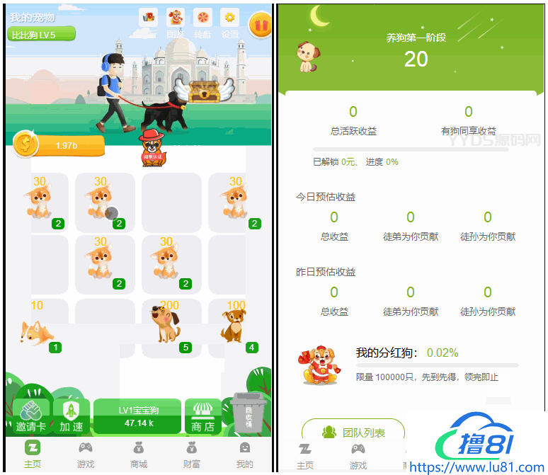 里面高的等级是38级别,分别有着分红狗、红包狗、合成狗