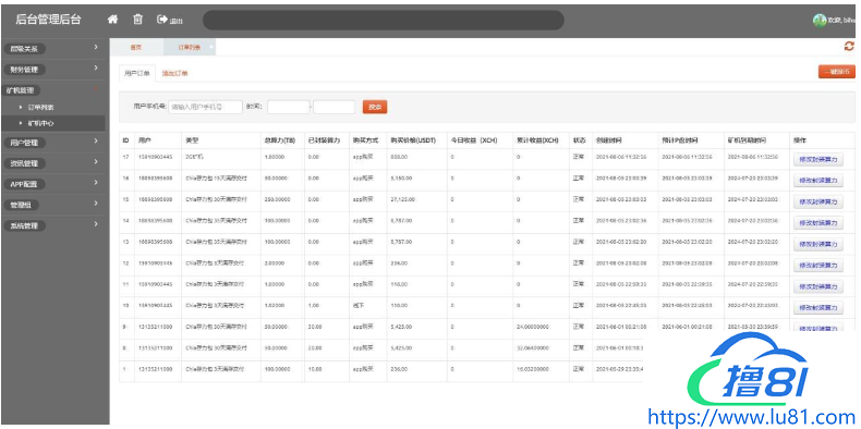5、根据区块浏览器的实时产币信息,后台填写每T的产币量,用于结算