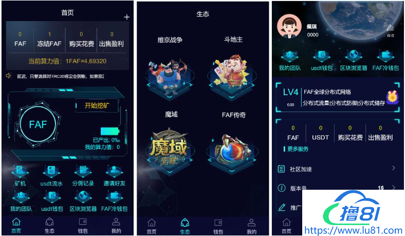 FAF区块链手游 数字钱包 集成游戏、矿机、农场