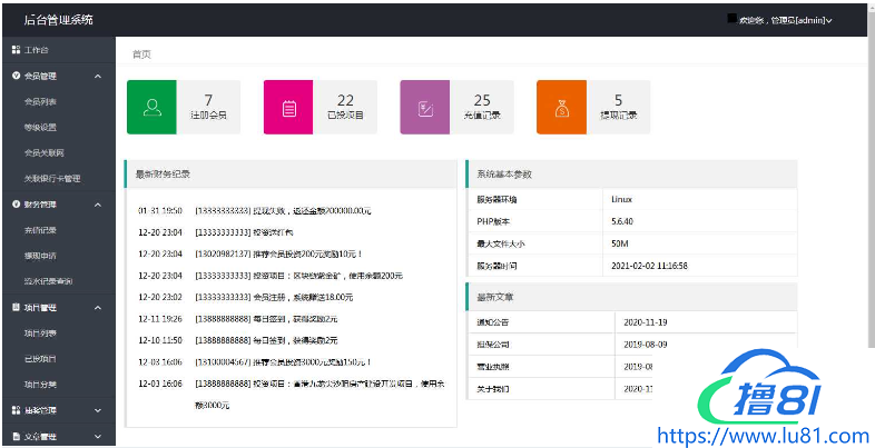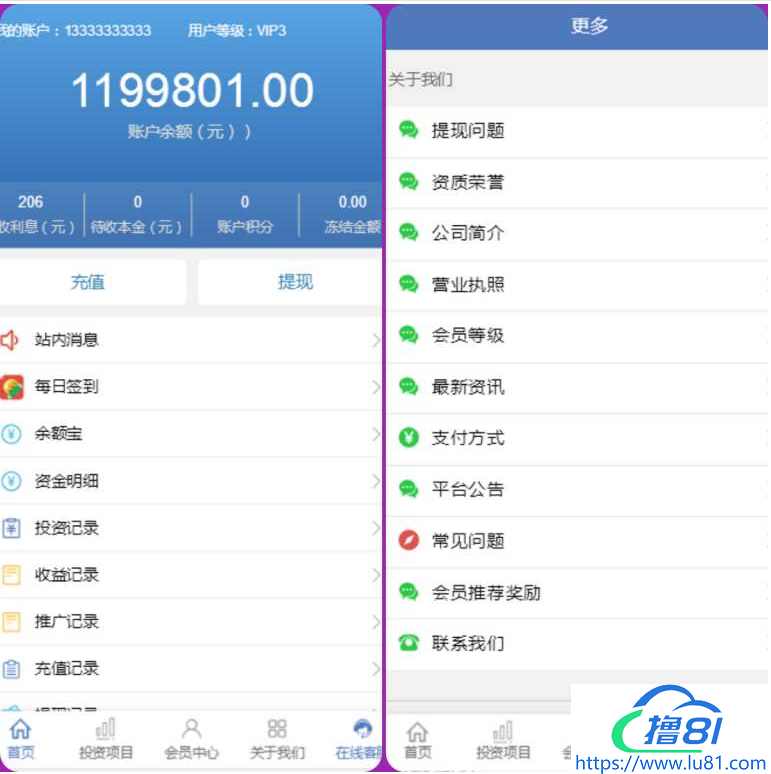 8.自动分红页面地址(需24小时一直打开):你的域名/index.php?s=/Handle/jiesuan