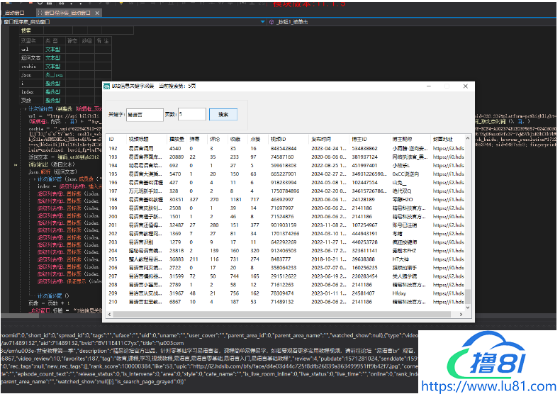 按关键词采集B站视频标题、播放量、弹幕数、评论数、收藏数、点赞数、视频ID、发布时间、博主ID、博主昵称、图片封面
