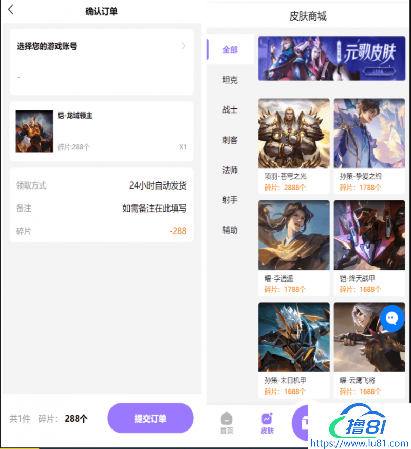 二开运营版王者荣耀皮肤抽奖系统
