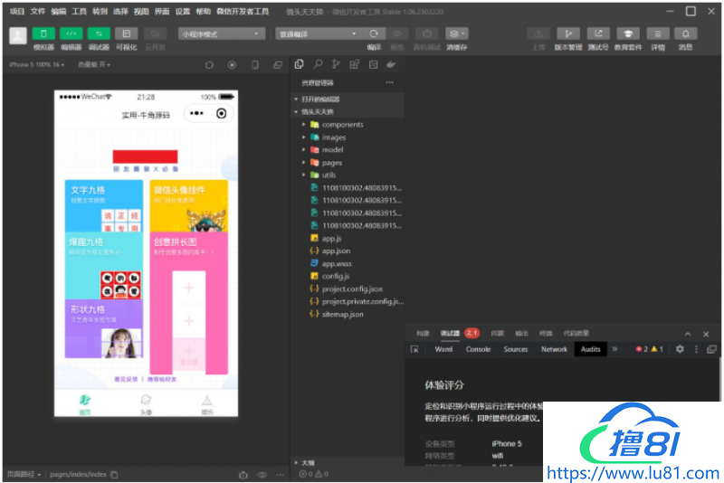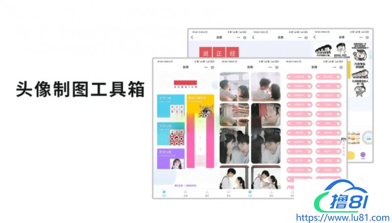 主要功能有文字九格、头像挂件生成、爆趣九宫格、形状九宫格、创意长图、情侣头像、猫狗交流器。
