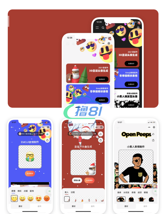 9.支持手动更换素材或者前往比比网下载更多的表情素材导入包;