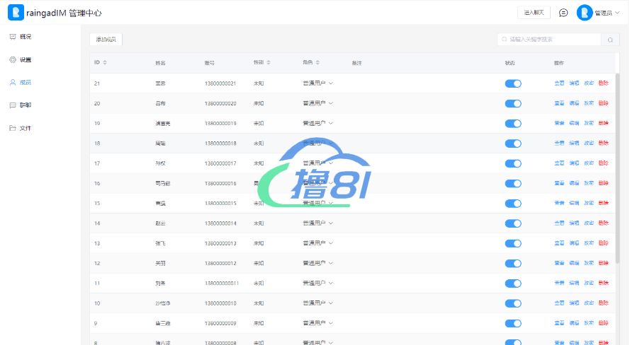 我们提供简易的后台管理功能,包括用户管理、群组管理和系统设置等。