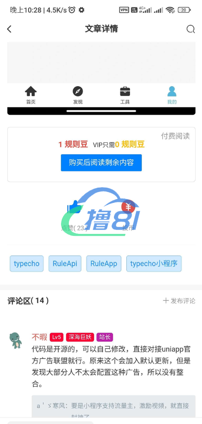 该客户端为一款功能强大的文章/社区/自媒体平台,支持安卓、苹果和小程序打包。主要包含文章模块、用户模块、支付模块、聊天模块和商城模块等基础功能,并带有VIP会员、付费阅读等收费体系。同时,用户可以发布文章、动态、商品、视频和图片等多种内容。