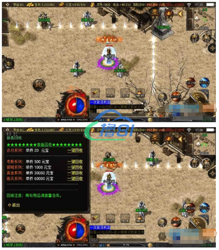 里面的终极装备是毁灭系列,也有特戒,短暂的测试过程中,对自动回收、泡点、狂暴等几个NPC经行了测试,