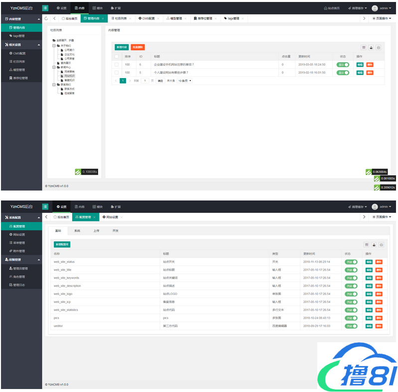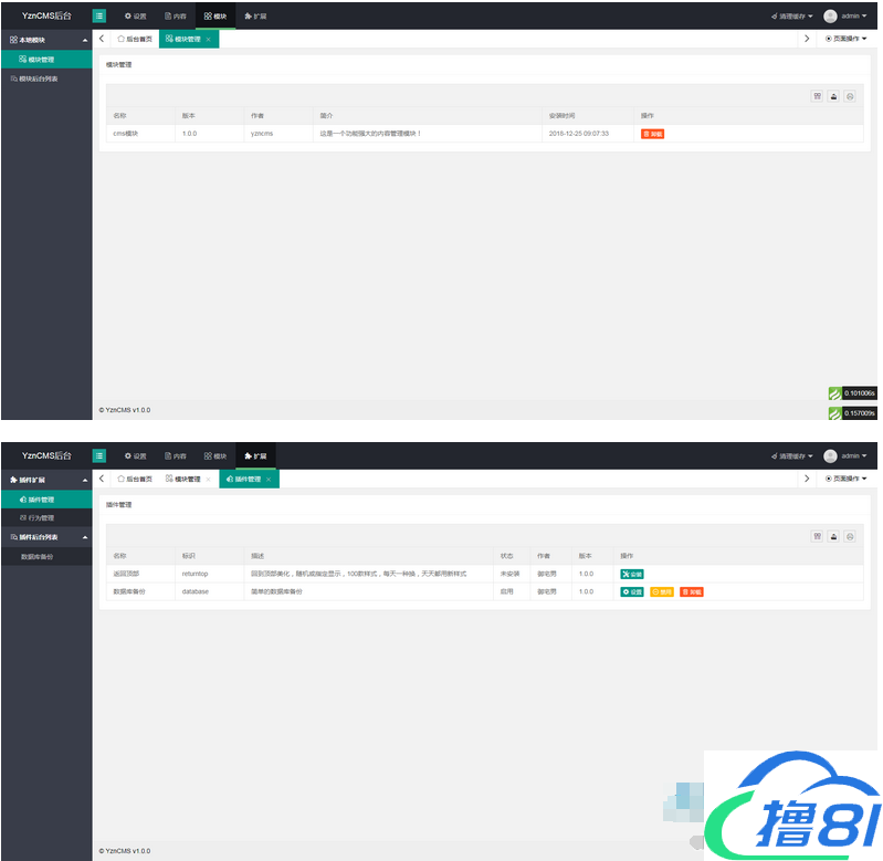 演示地址:http://demo.yzncms.com/admin/ (超级管理员:admin admin)