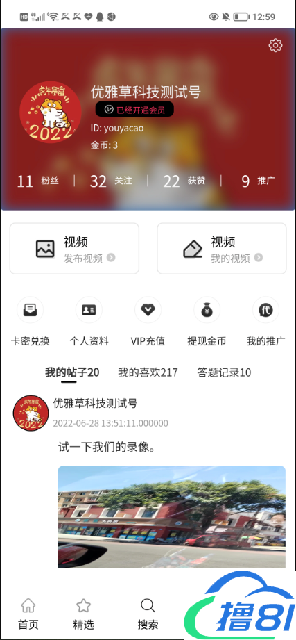 4、包含视频搜索、收藏、分享、点赞、评论等多样化互动功能,也可进行合规的视频上传。