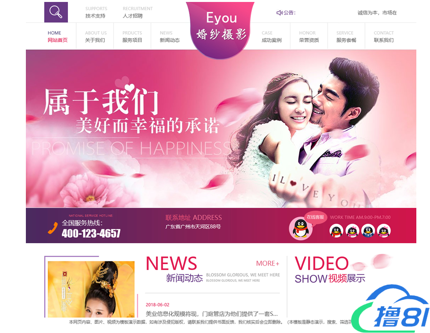易优cm婚礼婚庆策划摄影写真网站源码是基于易优cms开发,非常适合婚庆企业通过网络拓展业务、程序内核为Thinkphp5.0开发,后台简洁,为企业网站而生。