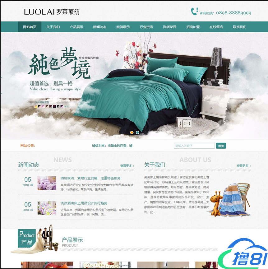 易优cms纺织棉床上用品类网站源码
