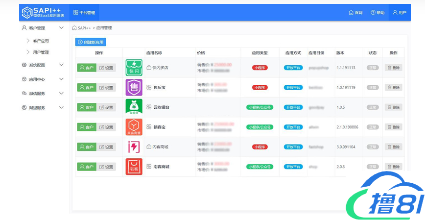 SAPI++公众号小程序SaaS框架包含多个专业定制化的小程序,都将开源。案例于实例见官方运营平台