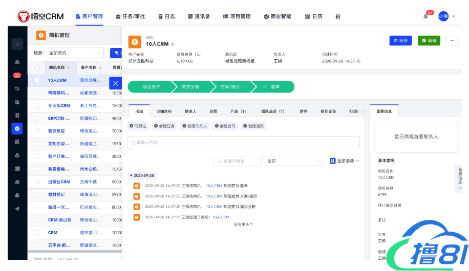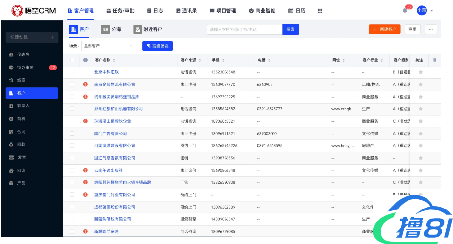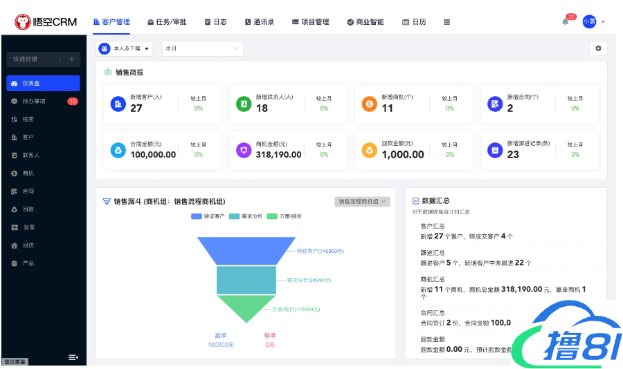 悟空CRM PHP版是一款基于TP5.0+vue+ElementUI的前后端分离CRM系统。