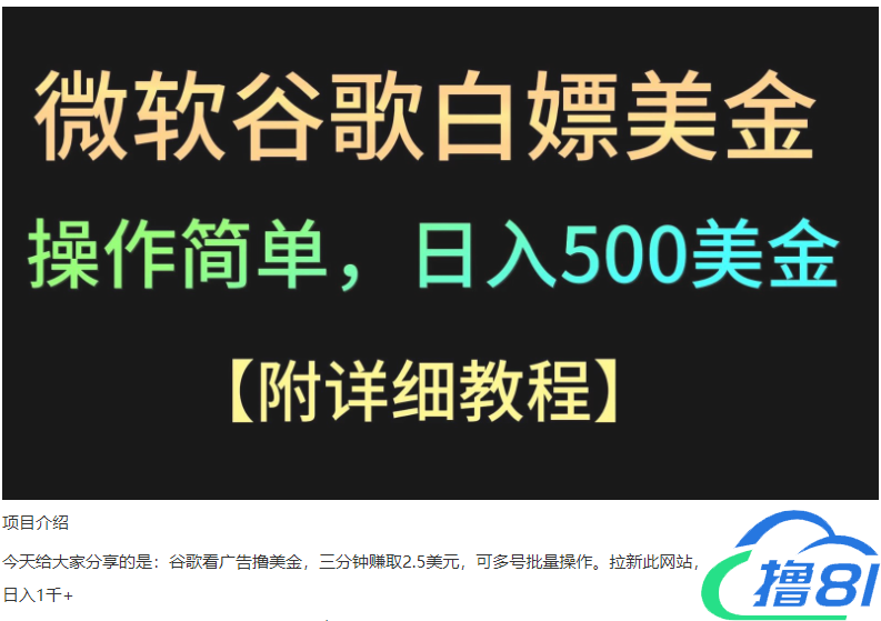 微软谷歌项目3.0,轻松日赚500+美金,操作简单,小白也可轻松入手!