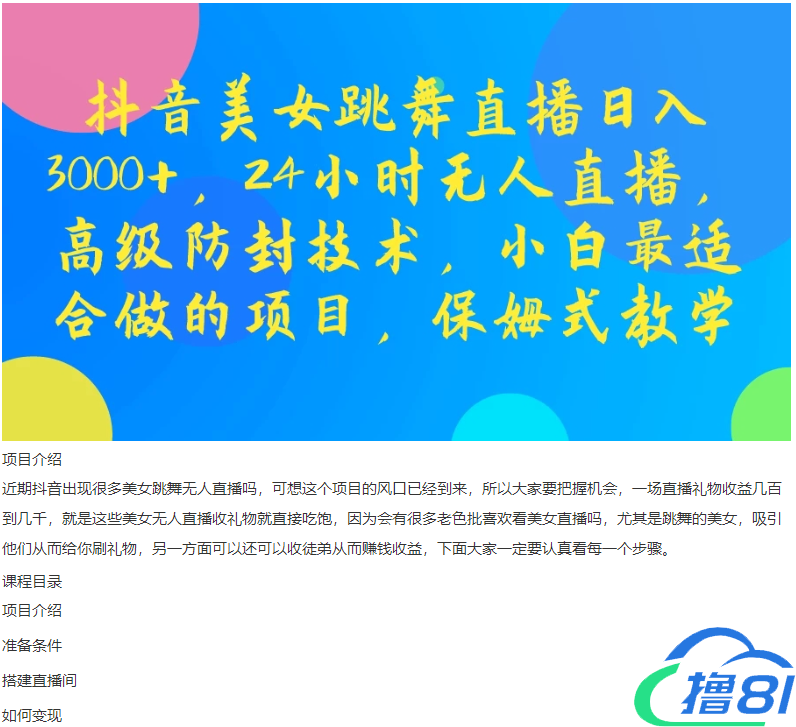 抖音美女跳舞直播日入3000+,24小时无人直播,高级防封技术,小白最适合做的项目,保姆式教学