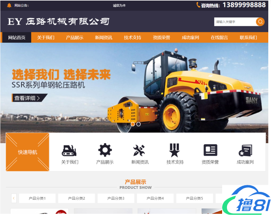 易优压双驱挖掘机压路机器类网站源码是基于易优cms开发,适合企业进行机器类展示使用。程序内核为Thinkphp5.0开发,后台简洁,为企业网站而生。