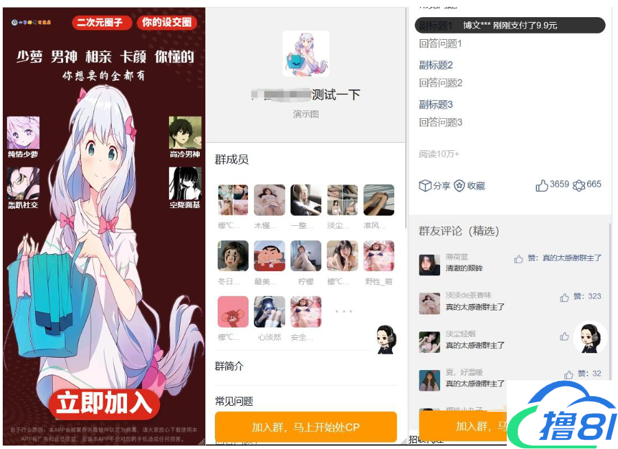 九块九加群微信裂变功能,可以扩展人脉、吃瓜、宝妈同城相亲和交友等功能,并可添加表情包。
