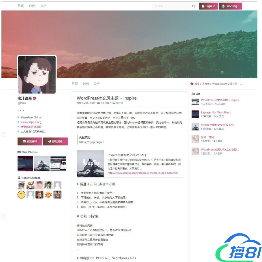 Inspire仿推特社交风格主题