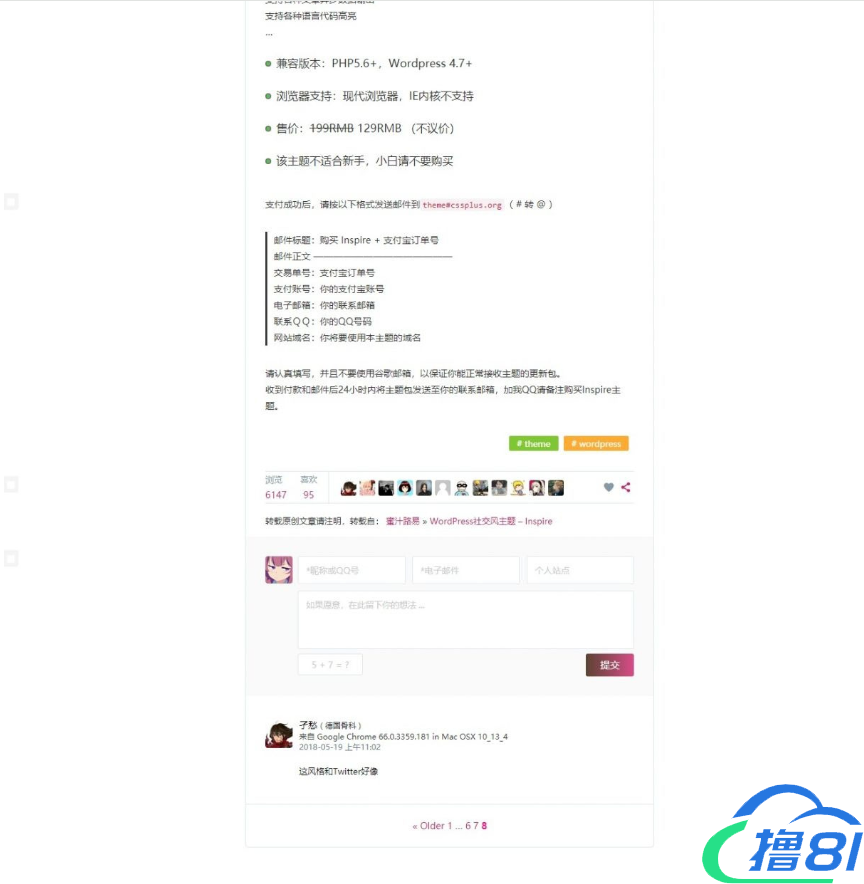 基于WordPress开发的高颜值的自适应主题 支持白天与黑夜模式