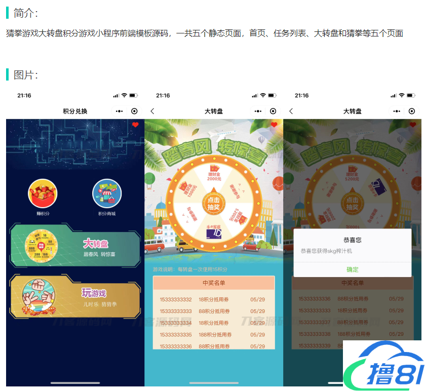 猜拳游戏小程序源码 大转盘积分游戏小程序源码 积分游戏小程序源码