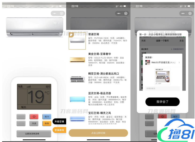 2024最新版虚拟便携空调小程序源码 支持流量主切换空调型号