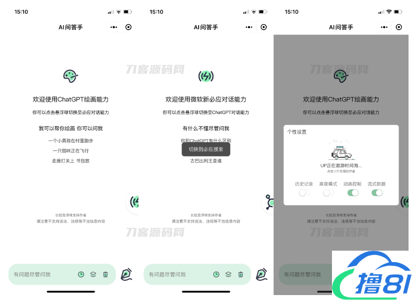 单击悬浮球切换 (gpt对话 gpt绘图 newbing对话 轮换操作)