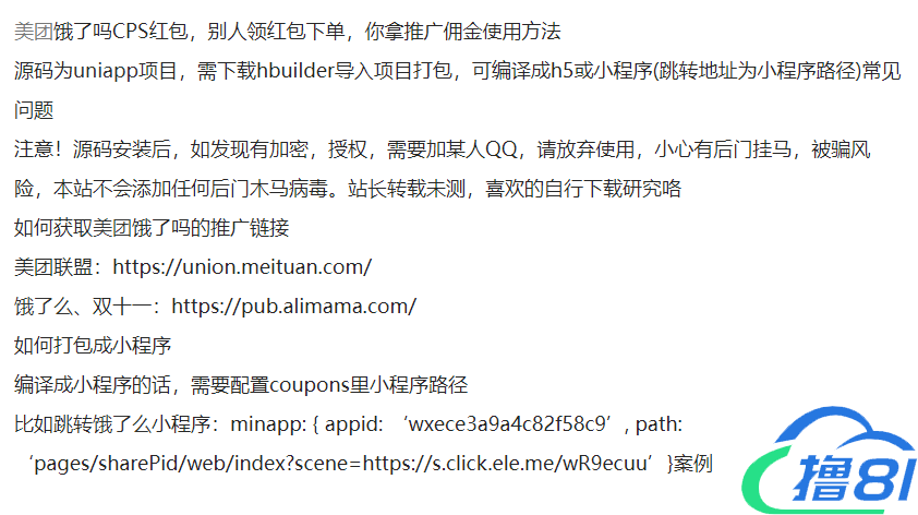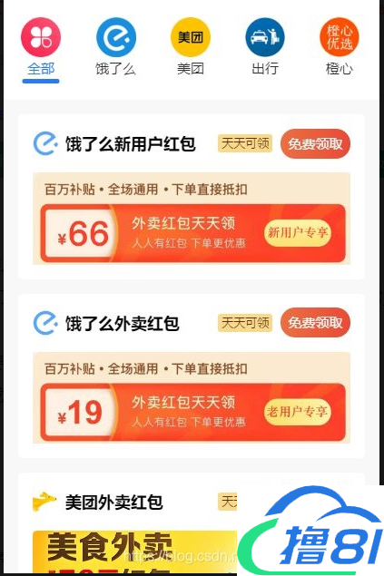 美团饿了吗CPS红包推广赚佣金+可编译成h5