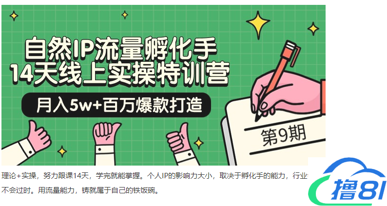 自然IP流量孵化手 14天线上实操特训营【第9期】月入5w+百万爆款打造 (74节)
