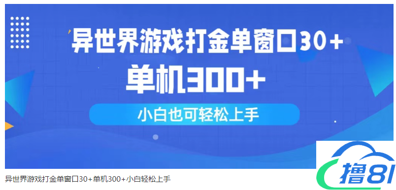 异世界游戏打金单窗口30+单机300+小白轻松上手