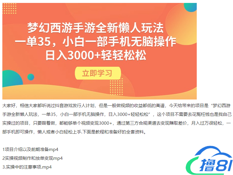 梦幻西游手游全新懒人玩法 一单35 小白一部手机无脑操作 日入3000+轻轻松松