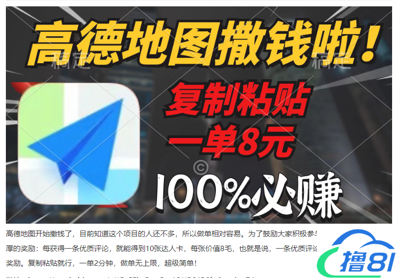 高德地图撒钱啦,复制粘贴一单8元,一单2分钟,100%必赚