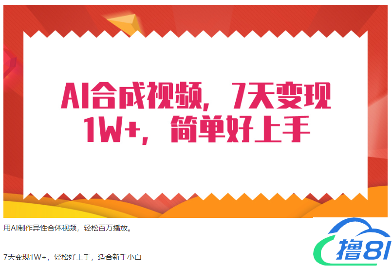 最新AI合成技术,7天疯狂变现1W+,无脑纯搬运!