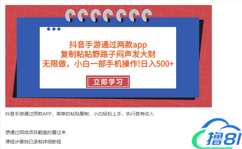 抖音手游通过两款app,复制粘贴野路子闷声发大财,无限做 一部手机日入500+
