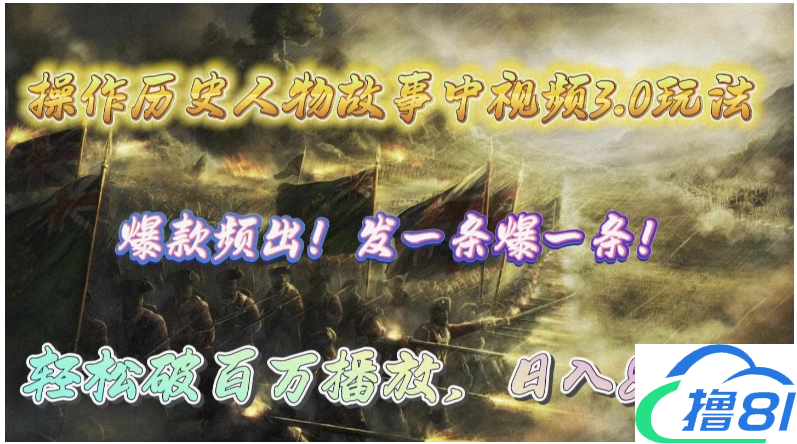 《操作历史人物故事中视频3.0项目,爆款频出,发一条爆一条!当天做,第二天见收益,轻松破百万播放,日入8000+!》
